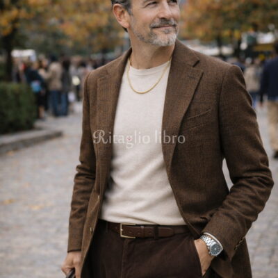 ブラックレザーライダースを中心に、男らしさとエレガンスを両立した大人の着こなし例です。シャツとジャケットを同色で揃えたオールブラックスタイルは、洗練された都会的な印象を与えます。一方で、チェック柄のスラックスを取り入れることで、無地だけでは作れない奥行きをプラスしています。ベルトや腕時計などの小物はシンプルながらも高級感のあるデザインを選び、全体の統一感を強調。このコーデは、ビジネスカジュアルやディナーシーンにも最適です!