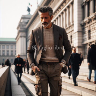 グレーのスーツもカットソーと白スニーカーで合わせれば、普段使いに重宝します。さらに、上からトレンチコートを羽織れば、春っぽさがアップ。また、コートの色は、ライトベージュなどの明るい色を選ぶと、より春っぽさを演出できます。