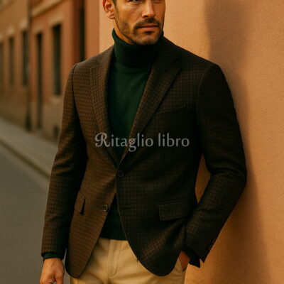 一方、カーキのリネンブレンドパンツは、軽やかでリラックスしたシルエットを作り出し、くるぶしの見える丈が現代的なセンスを感じさせます。そしてクラシックなローファーはここでも大活躍し、エスプレッソのような深みのあるブラウンは、足元に上質さをもたらしてくれます。