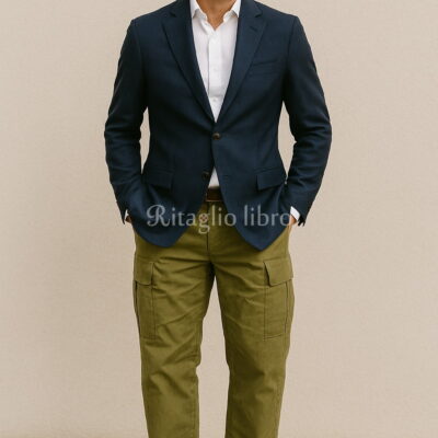 リゾートスタイルにもマッチするブラウンジャケット×白パンツ