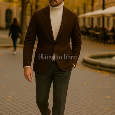 キャメルのチェスターコートは、品格と暖かさを兼ね備えた冬のビジネスコーデに最適。このコーディネートでは、ブラウンスーツを合わせ、同系色でまとめることで柔らかく落ち着いた印象を演出しています。白シャツとネイビーネクタイを取り入れることで、バランス良く知的な要素をプラス。足元には光沢感のあるブラウンの革靴を選び、全体を引き締めています。このスタイルは、ホテルのラウンジや商談の場でも自信を持って着られる、大人の洗練されたコーディネートです。