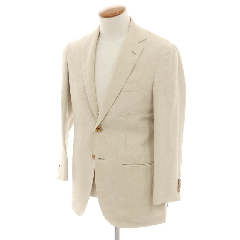 ベージュジャケットにサックスブルーのシャツ、ホワイトパンツを合わせた爽やかで清潔感あふれるジャケパンコーデ。ベージュの柔らかなトーンとブルーの涼しげな色合いが絶妙に調和し、春夏らしい軽快さを演出します。足元はダークブラウンのスエードローファーで、全体を引き締めつつ季節感もプラス。インナーのブルーシャツは、ノータイでも襟元がきれいに見える適度なハリ感がポイント。日中の街歩きや、週末のレストランディナーにもマッチする大人の装いです。