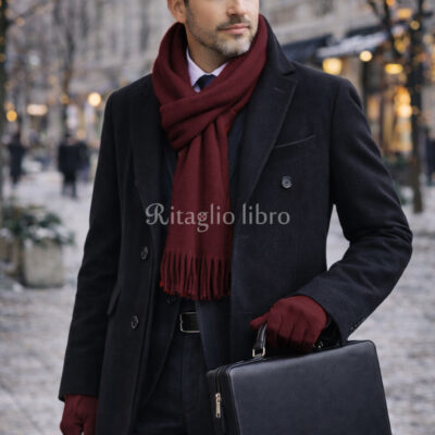 冬のネイビースーツを洒脱に見せる差し色術|ボルドーマフラー×革手袋で作るクラシコイタリア流小物コーデ