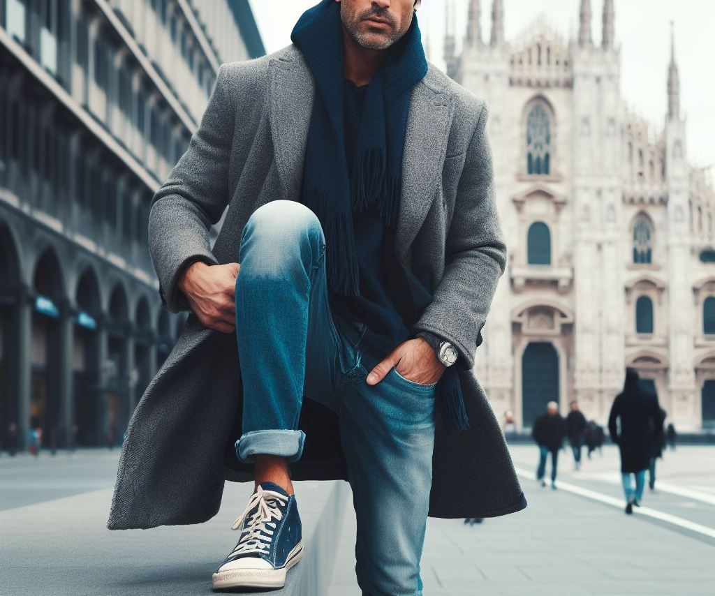 特に最近のクラシコイタリアでは、コートのクラシックさに対して足元やボトムで外すバランスが主流です。落ち着いた色味のチェスターコートに、ライト〜ミディアムウォッシュのデニムを合わせると、素材のコントラストが生まれ、硬すぎず、かといって幼く見えない絶妙な“こなれ感”が演出できます。