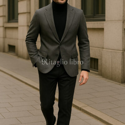 チャコールグレースーツ×ブラックタートルで魅せる冬のモノトーンスタイル|シンプルに研ぎ澄まされた大人の装い