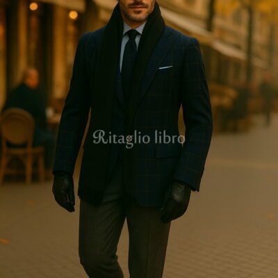 ネイビーチェックジャケット×グレースラックスで魅せる冬のビジネスカジュアル|マフラーで品よく防寒する大人の装い